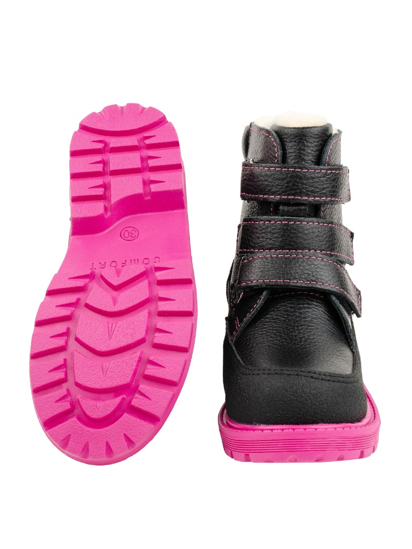 У вашего ребенка плоскостопие, плоско вальгусная постановка стопы или просто устают ножки при длительной ходьбе? Тогда наша ортопедическая обувь создана для вашего ребенка. Утепленные сапоги для девочки из натуральной кожи премиум класса и подкладки из шерстяного меха, согреют ножки ребенка. При выборе модели с шерстяным мехом, за счет плотности меха, рекомендуем выбирать детскую обувь на 1-1,5 размера больше. Сапоги на молнии рассчитаны на узкую ножку. Внутри - съёмная стелька с активным супинатором. Жесткий задник надежно фиксирует голеностоп, а молния поможет застегнуть сапоги быстро и легко. Умерено эластичная и прочная подошва с каблуком Томаса не скользит и хорошо поглощает ударную нагрузку, что позволяет ножкам ребенка не уставать.
